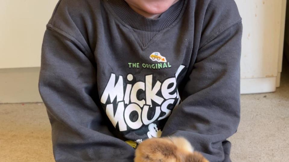 Kyllingar i barnehagen Borna i Syltebøen barnehage kosar seg med åtte nydelege kyllingar som har vorte ruga fram i rugekasse.