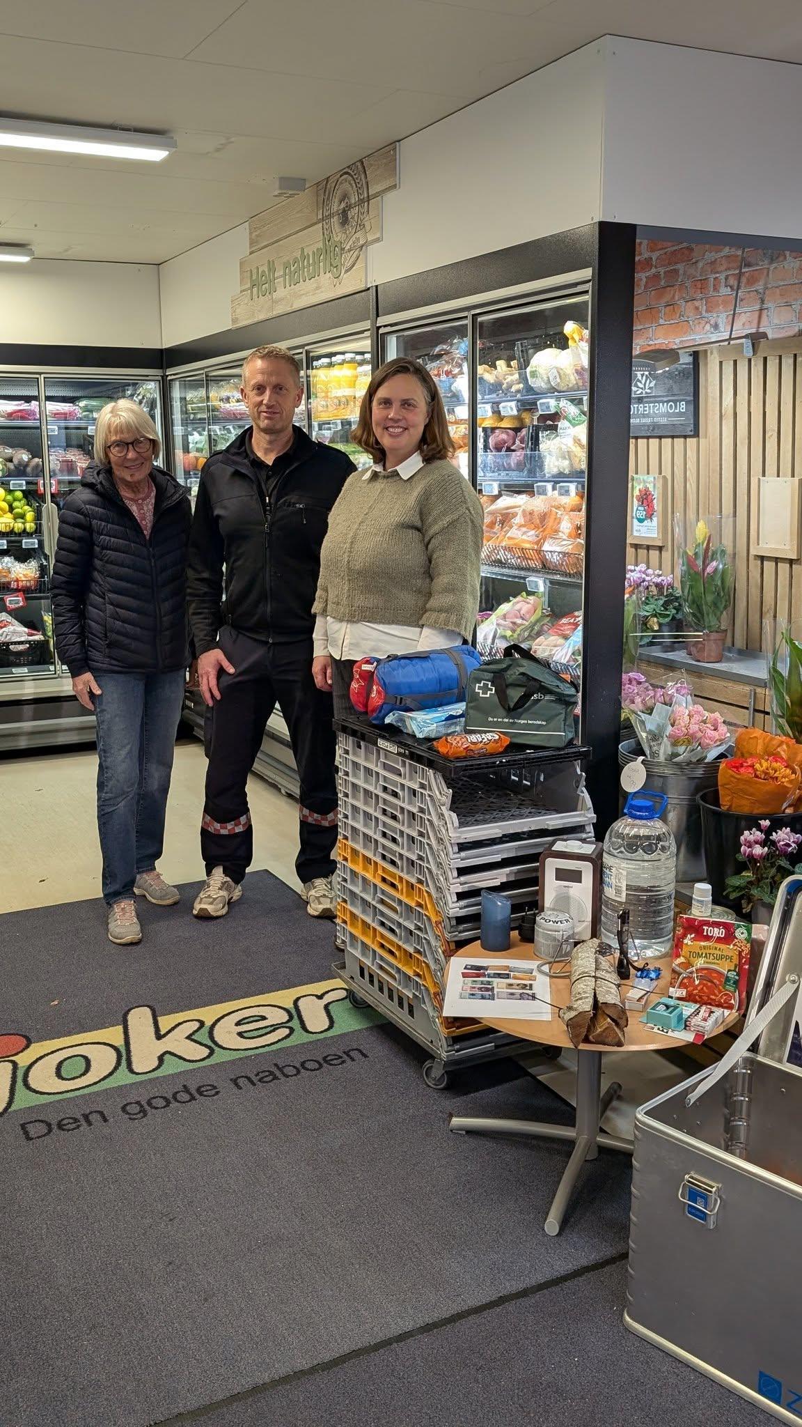 Ordførar i butikk saman med Anna Margrete frå Mental Helse Fjord og Oddbjørn frå Fjord og Stranda Brann- og redningvesenFakta om Eigenberedskapsveka 2025