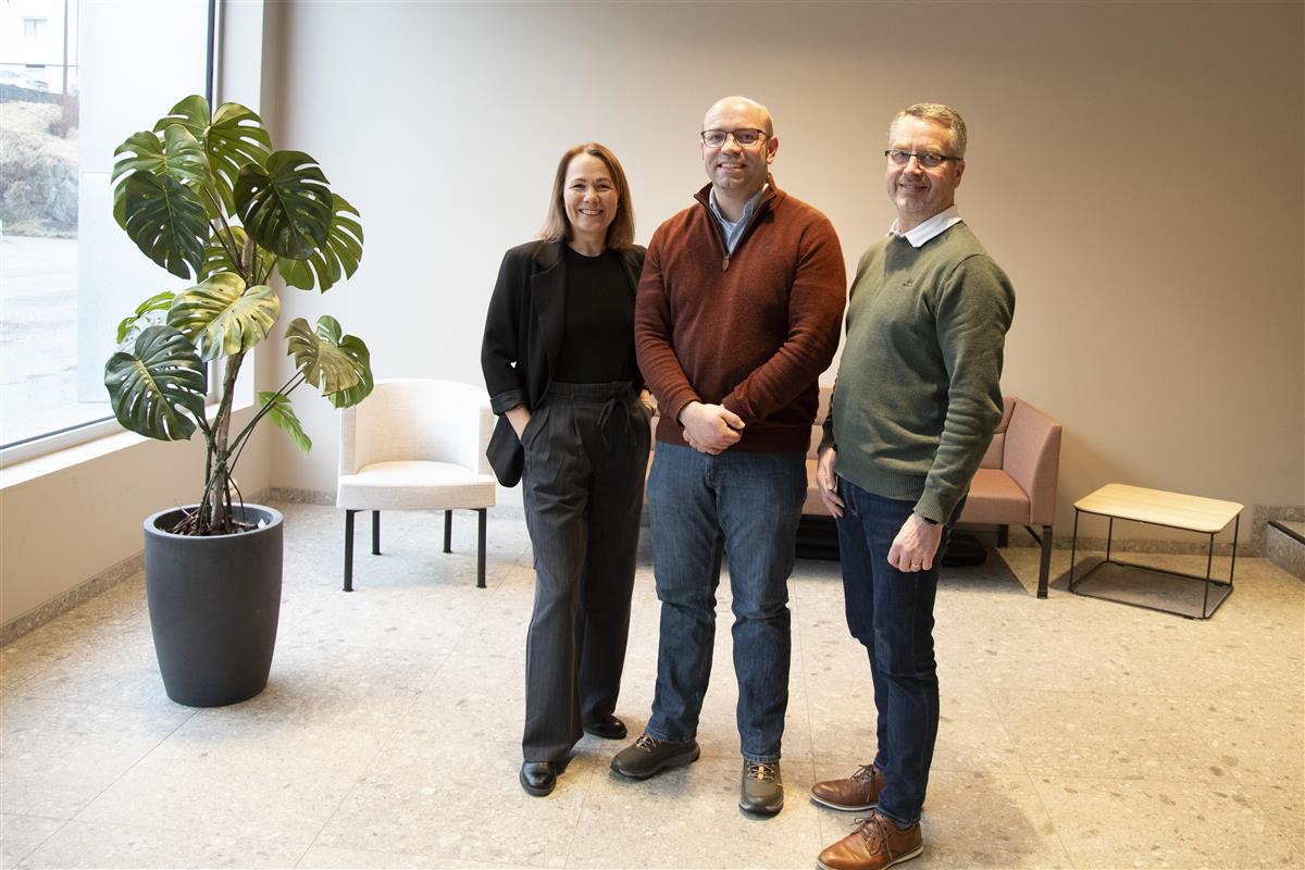 Frå venstre i bilete: Fungerande leiar, Senteret for et aldersvennlig Norge, Nina Myklebust, Kommunalsjef helse, omsorg og velferd i Fjord kommune, Sindre Søvik Erstad, Rådgivar i Senteret for et aldersvennlig Norge, Olav Sæbø. Foto: Tina Kjensli Dyrseth